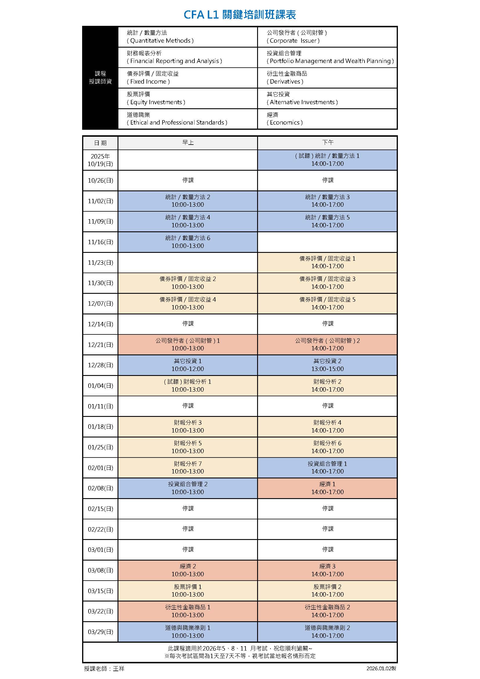 【CFA】251019期 CFA L1課表 - 字神帝國英語學院 :: WordGod English Institute