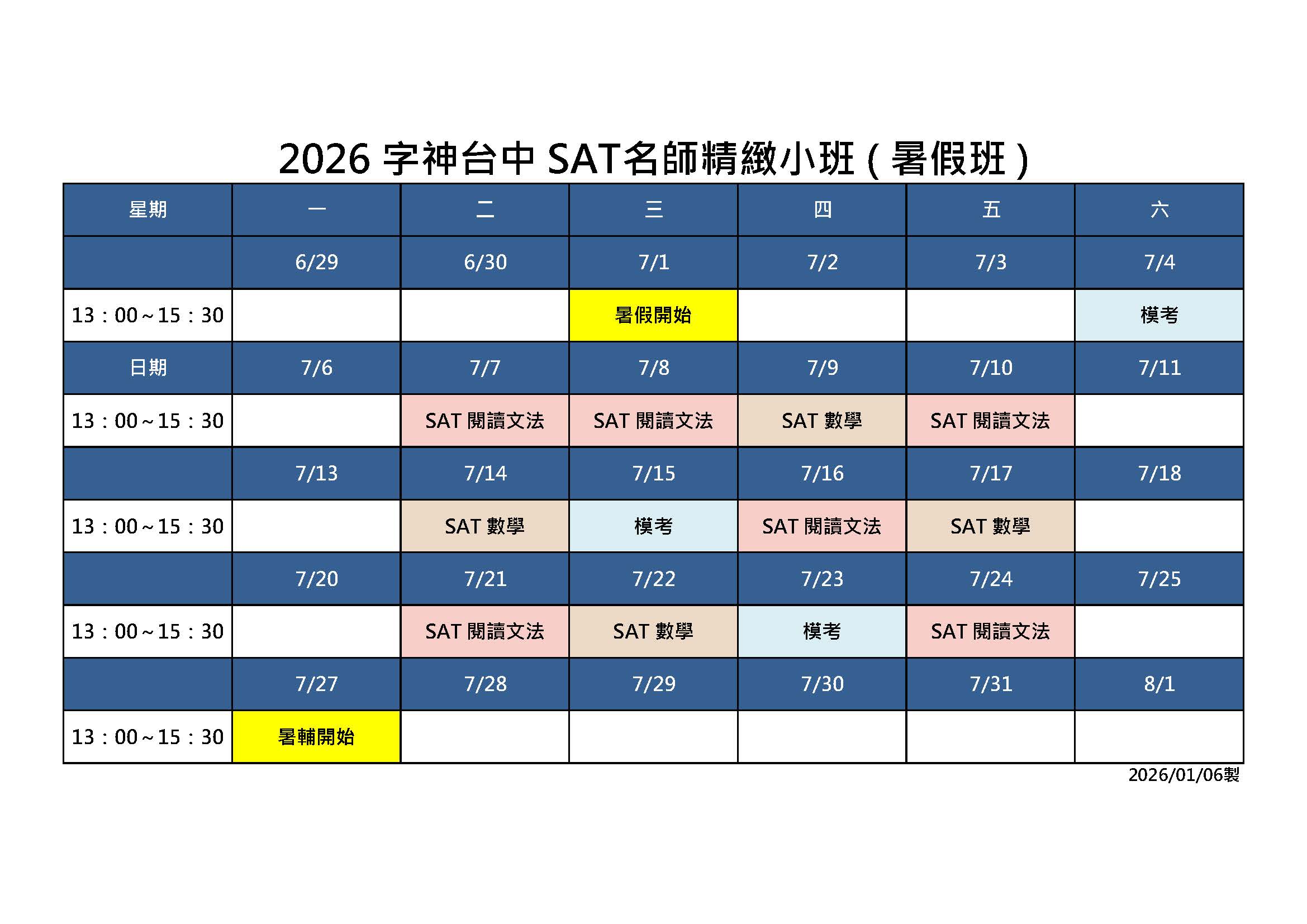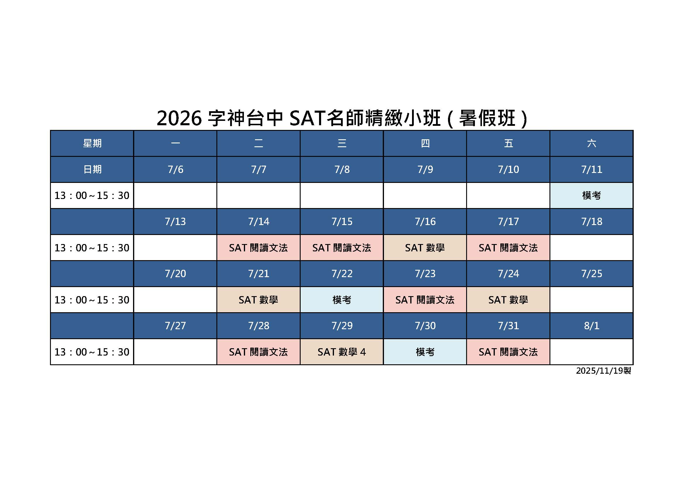 【SAT】 台中 2026年 SAT精緻小班-暑假班 - 字神帝國英語學院 :: WordGod English Institute