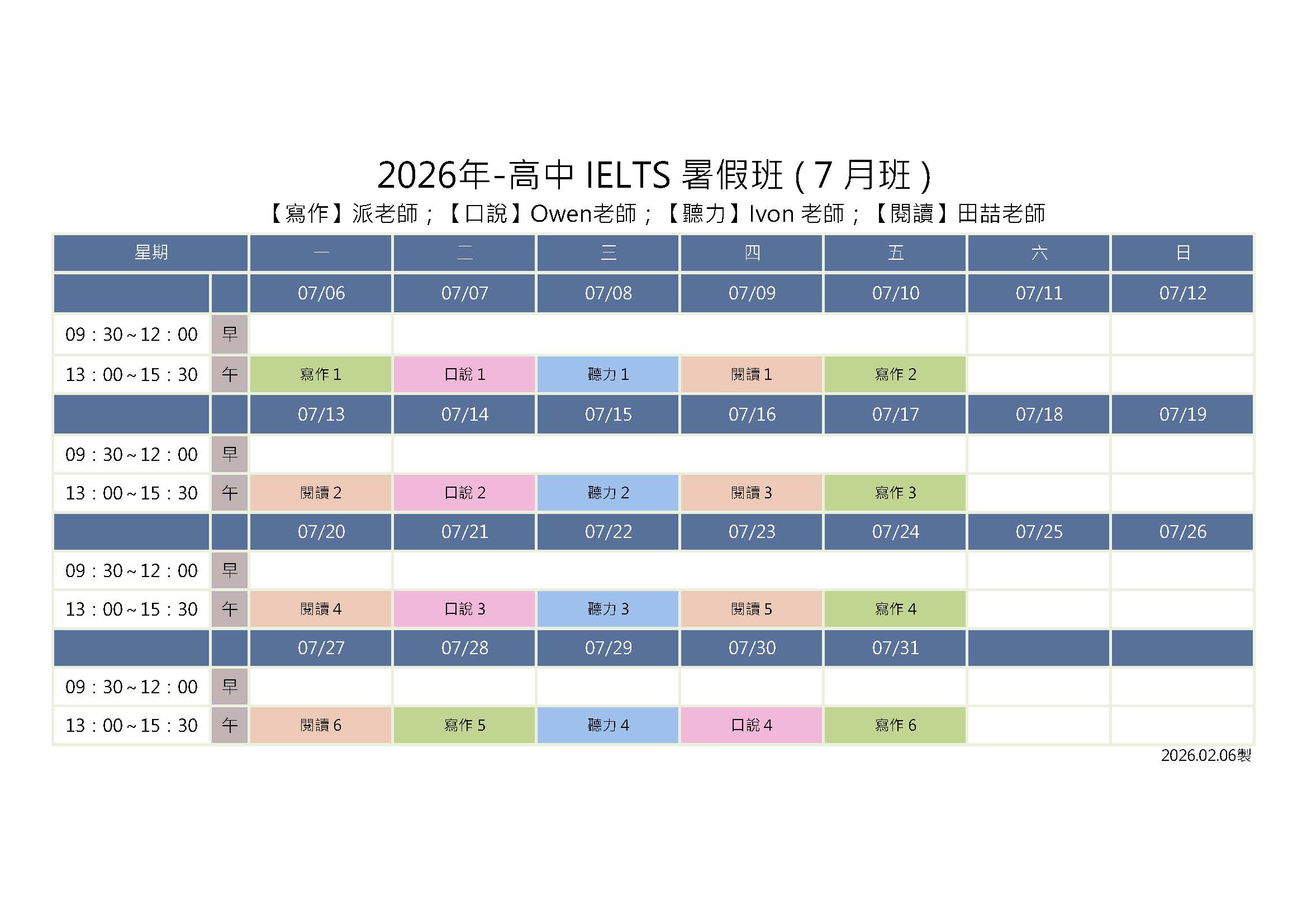 【高中雅思】2026年高中雅思暑假班課表-7月班 - 字神帝國英語學院 :: WordGod English Institute