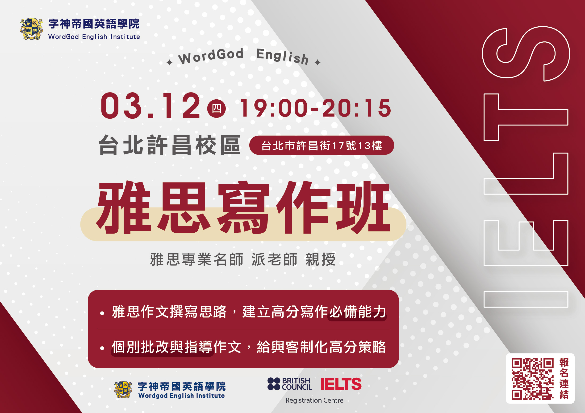 試聽地點:台北許昌分校 ( 台北市許昌街17號13樓 )