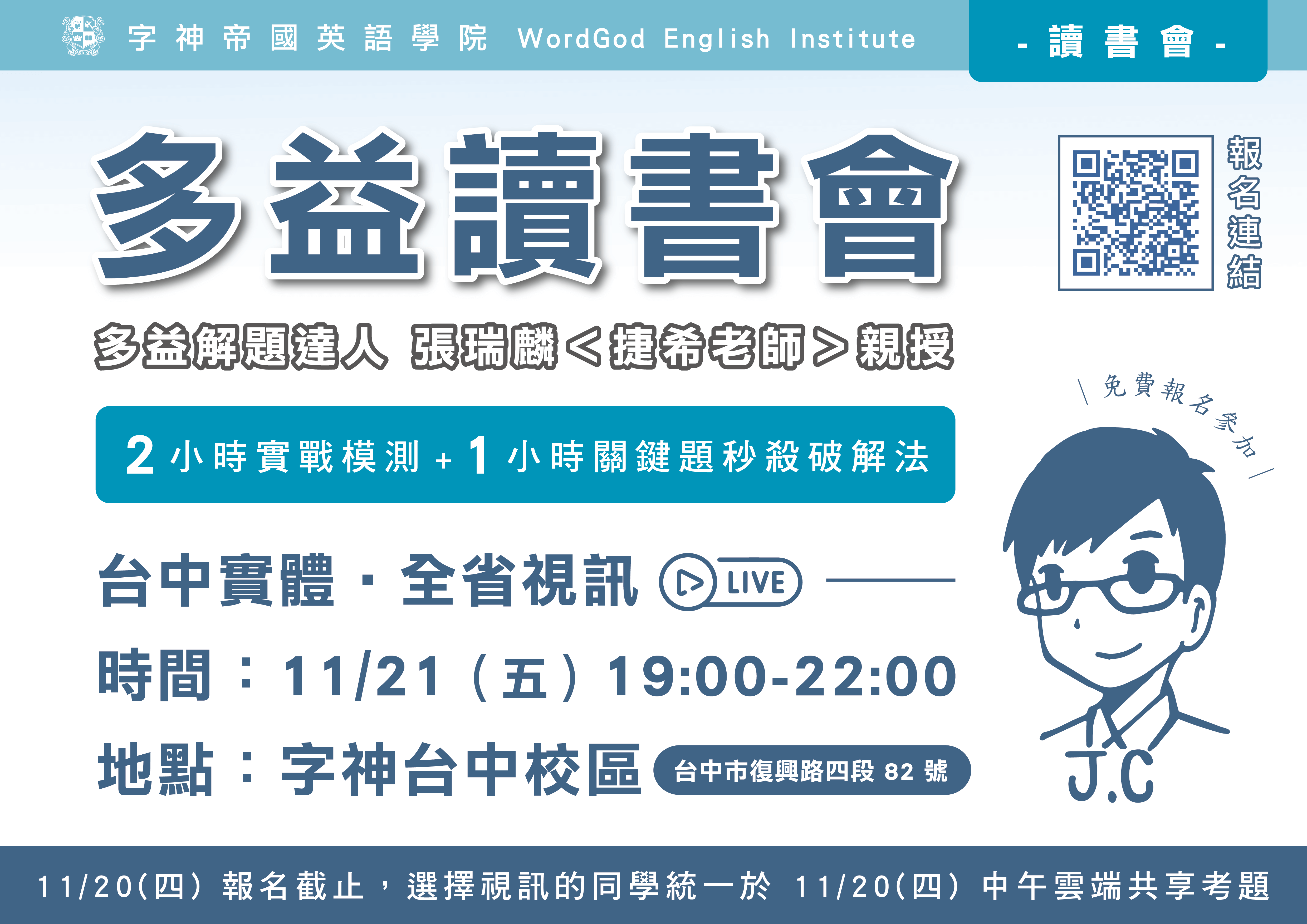 講座地點:字神帝國英語學院台中校區﹝台中市東區復興路4段82號﹞