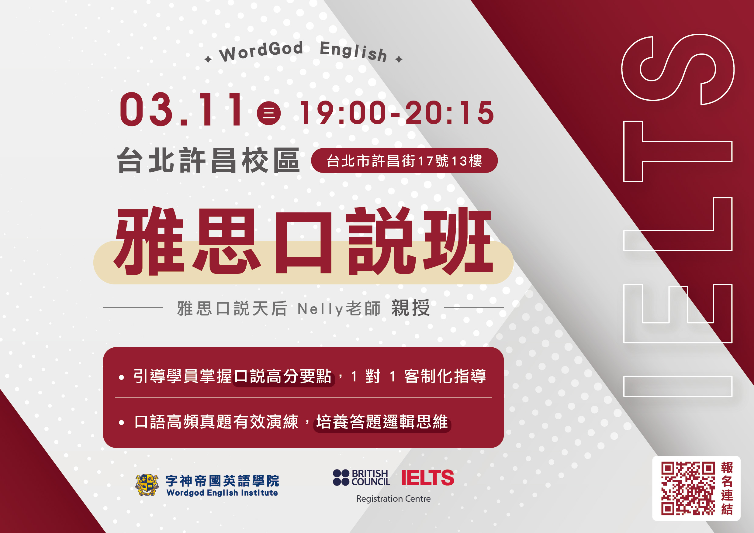 試聽地點:台北許昌分校 ( 台北市許昌街17號13樓 )