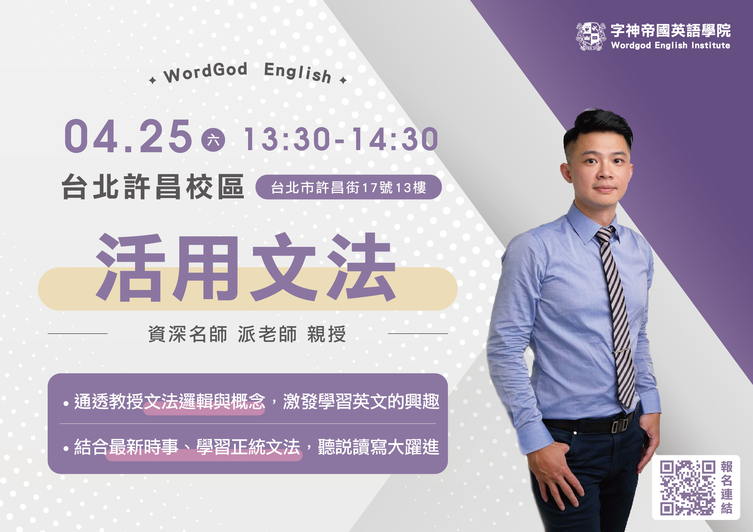 試聽地點:台北許昌分校 ( 台北市許昌街17號13樓 )