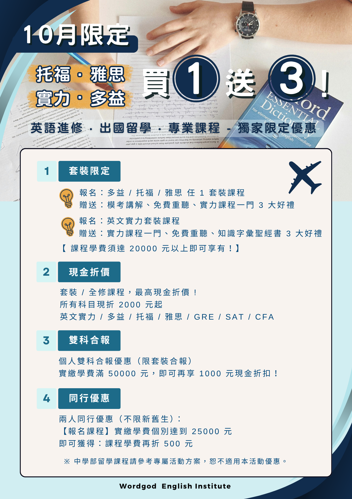 【 托福‧雅思‧實力‧多益,買 1️⃣ 送3️⃣ 】