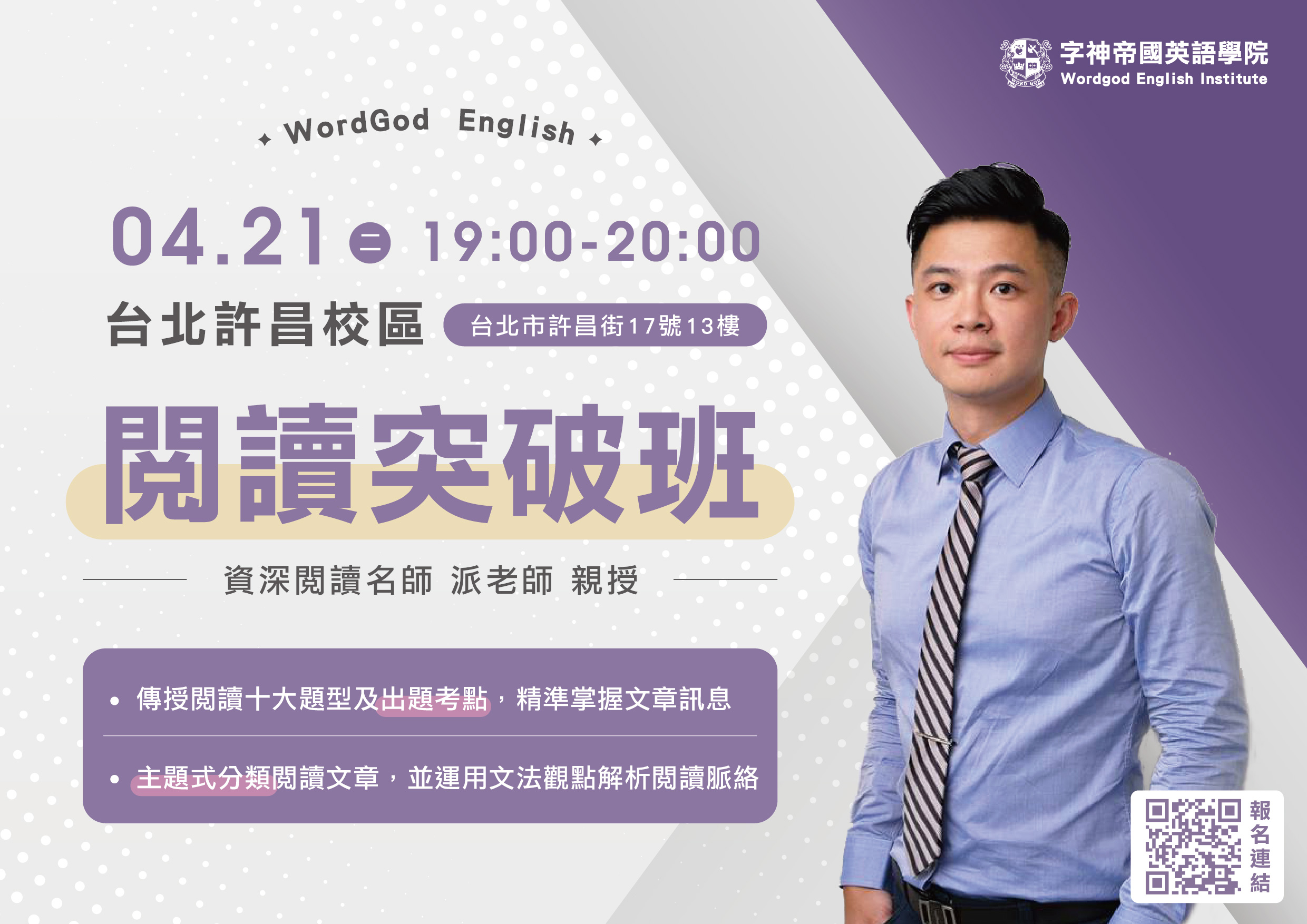 試聽地點:台北許昌分校 ( 台北市許昌街17號13樓 )
