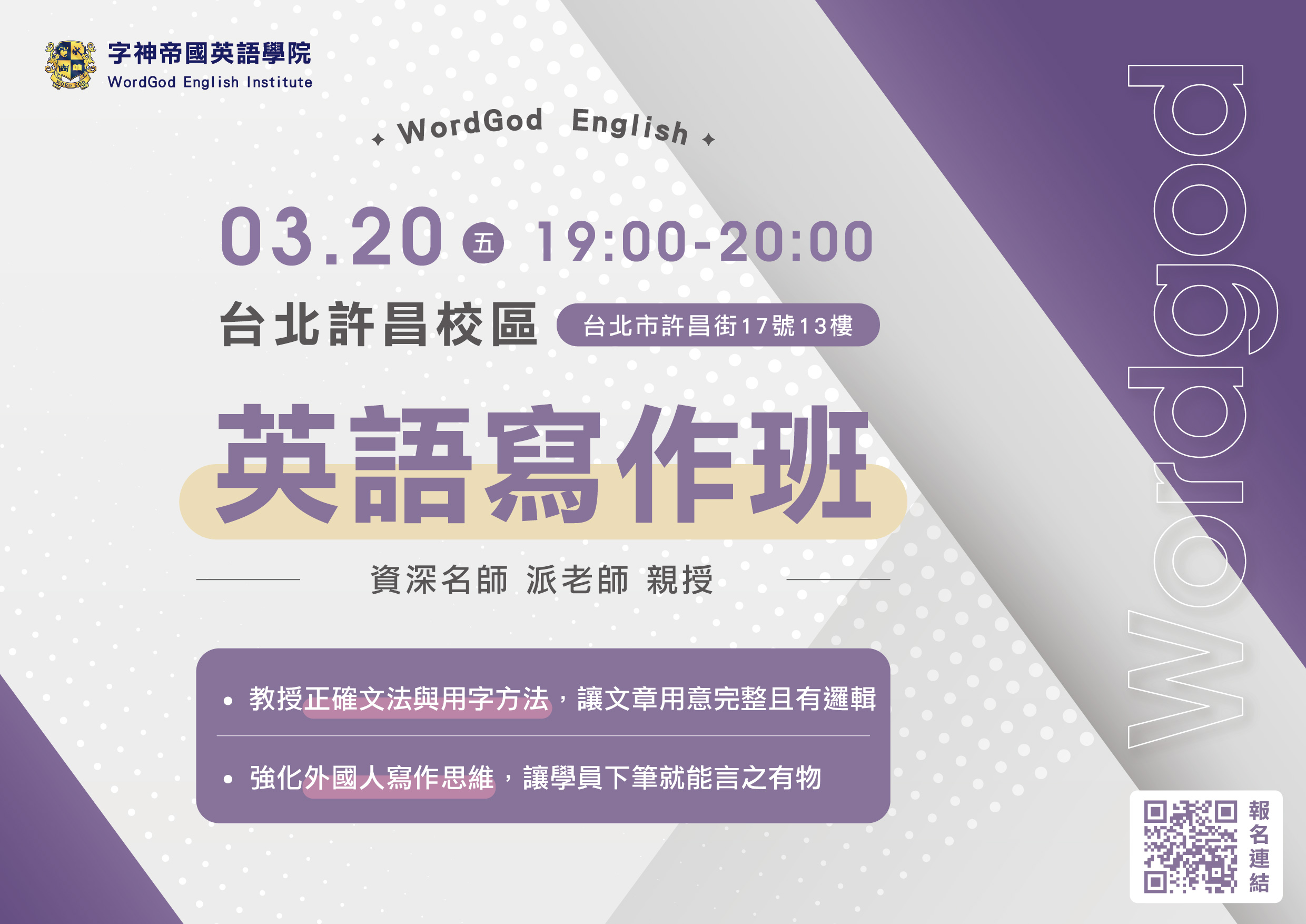 試聽地點:台北許昌分校 ( 台北市許昌街17號13樓 )
