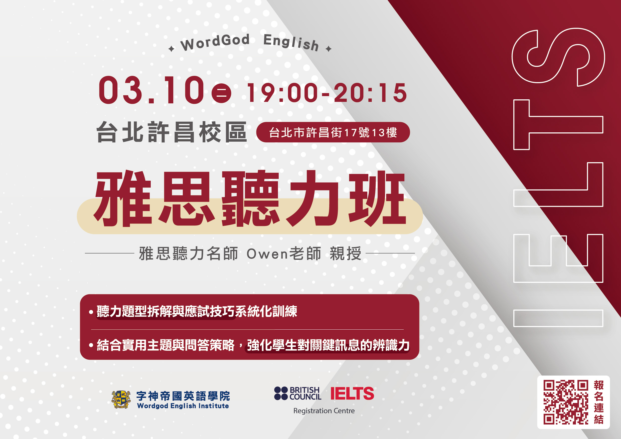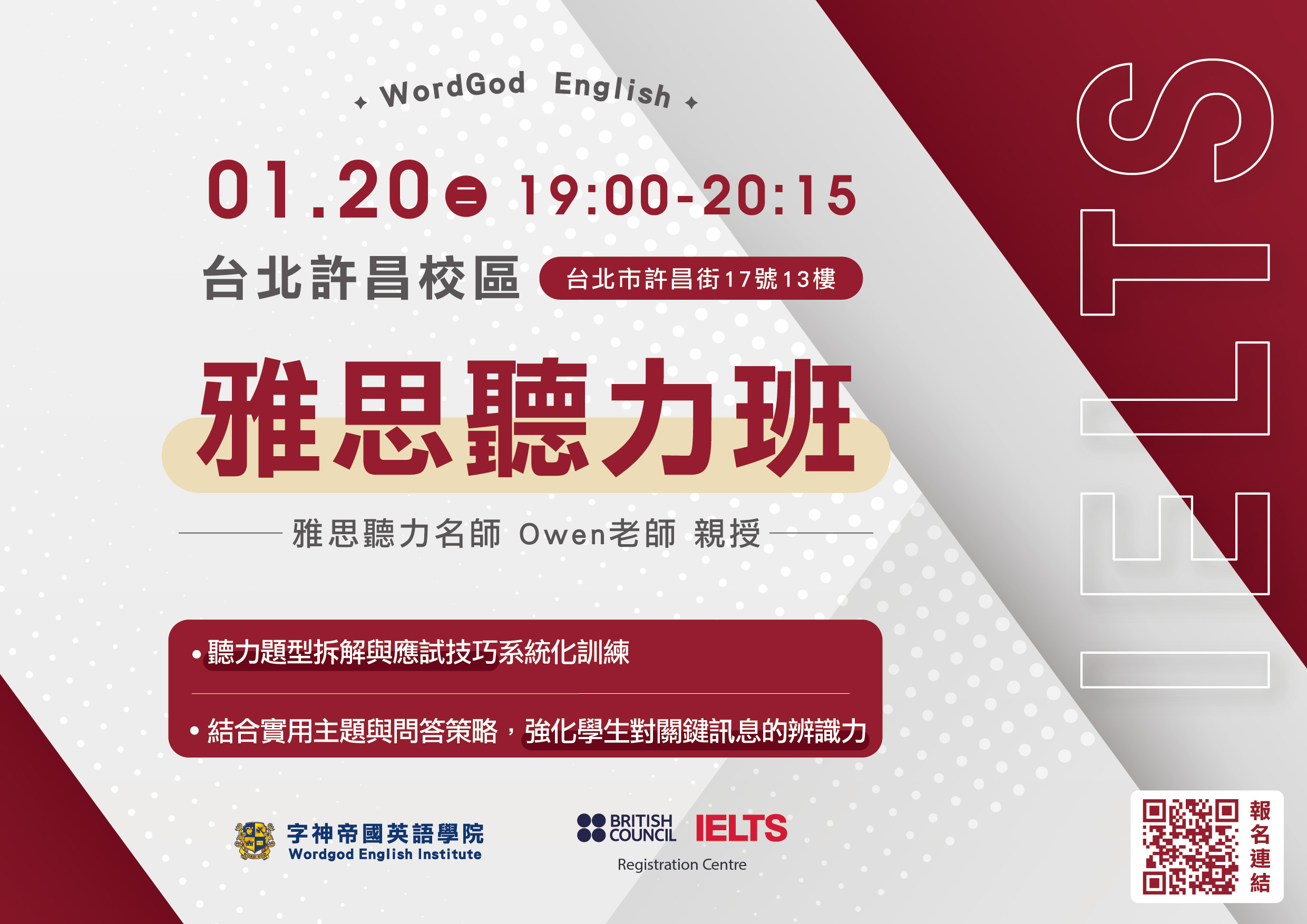 試聽地點:台北市許昌街17號13樓